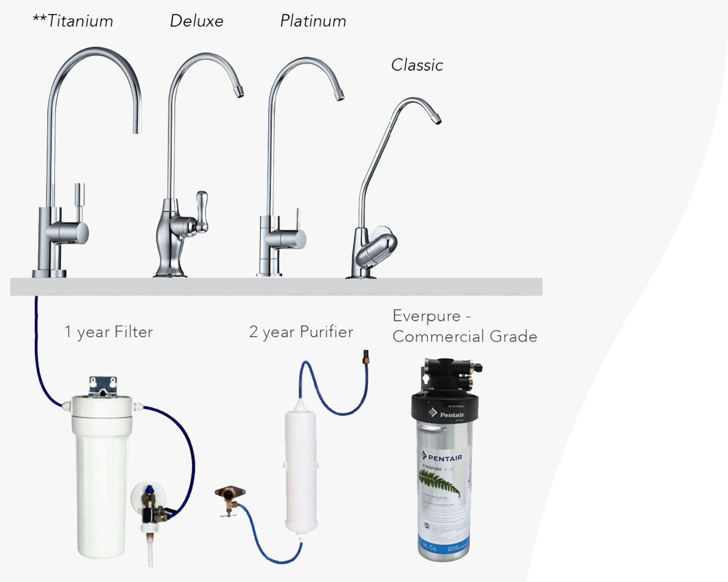 Our town water filters are three-stage filtration systems. These systems are designed to provide comprehensive water purification by passing water through three distinct filters, each targeting different contaminants to ensure clean, safe, and great-tasting water.
